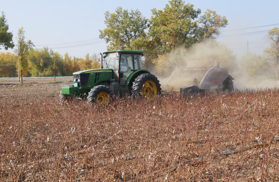 10月24日,笔者在新疆生产建设兵团第二师铁门关市二十九团十三连看到,一台起膜粉杆一体机正在田间有序作业,在进行残膜回收、秸秆还田。