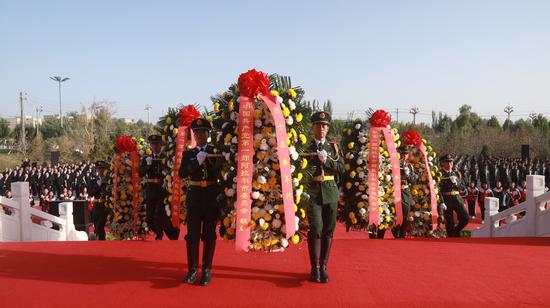 新疆兵团第一师阿拉尔市举行向人民英雄敬献花篮仪式