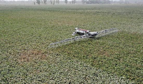 眼下,新疆生产建设兵团第一师阿拉尔市200万亩棉花陆续进入吐絮期,职工群众正抢抓农时,全面开展脱叶剂喷施工作,为棉花丰产丰收筑牢基础。