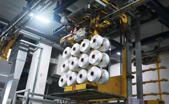 自动化的聚酯长丝生产车间。石继良 摄