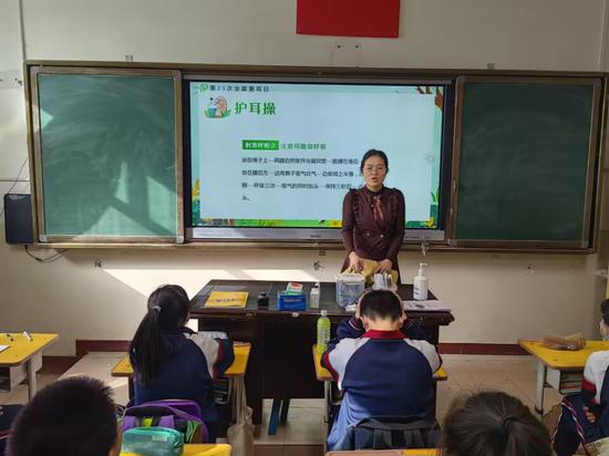 活动中,老师们借助课件,通过具体形象的图片、生动浅显的语言、游戏情境的再现等形式,帮助学生们了解耳朵的结构、功能,让学生们了解本次“爱耳日”的主题、宣传口号,同时,老师还结合真实案例,向学生讲述如何保护耳朵的方法,以及避免意外伤害耳朵的事故发生等。