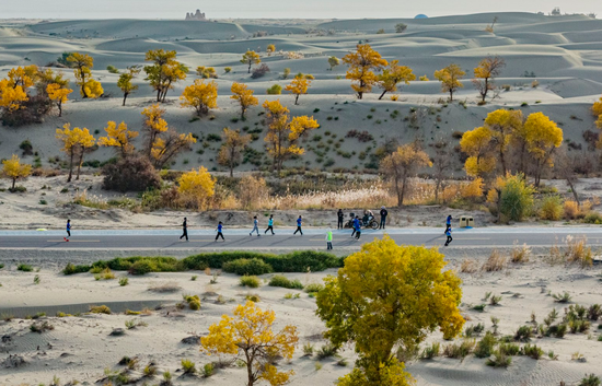 “赛道设计充分融合了我们独特的生态资源与历史文化,从永安湖到唐王城,从沙漠公路到胡杨林,全面展示了图木舒克永安湖景区山水林田湖草沙独特的自然风貌,实现了‘每跑一公里,都有不一样的景色’。”第三师图木舒克市文化体育广电和旅游局党组成员、副局长王新雷说,希望通过比赛提升城市形象,推动“体育+文化+旅游”的深度融合,助力打造“唐王城文化旅游”品牌和建设图木舒克南疆环游始末站节点城市。