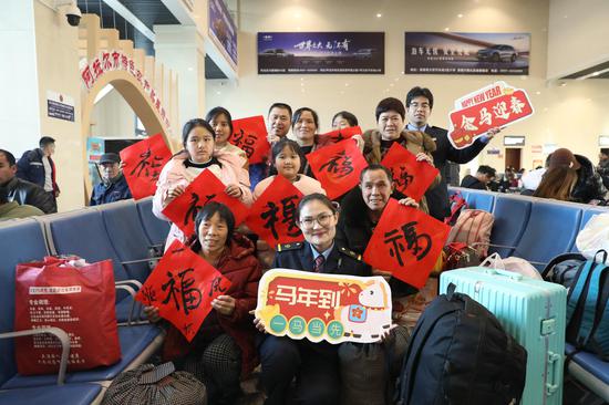 阿拉尔火车站春运首日:文艺汇演添年味 春联福字暖归途