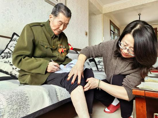 那天女儿帮他换裤子,无意间撩起裤腿,左腿膝盖下,赫然一个深深的凹陷——那是朝鲜战场上留下的弹坑。