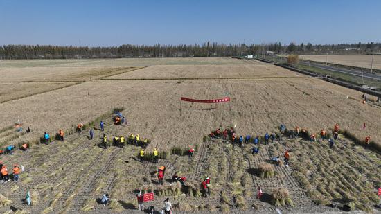 金秋时节,稻浪飘香。日前,新疆生产建设兵团第十四师二二五团一连羊脂籽米种植基地里一派繁忙景象,团机关党支部、各连队(社区)党支部及便民服务中心联合开展“躬耕稻田悟初心,实干担当践使命”农事体验主题党日活动。