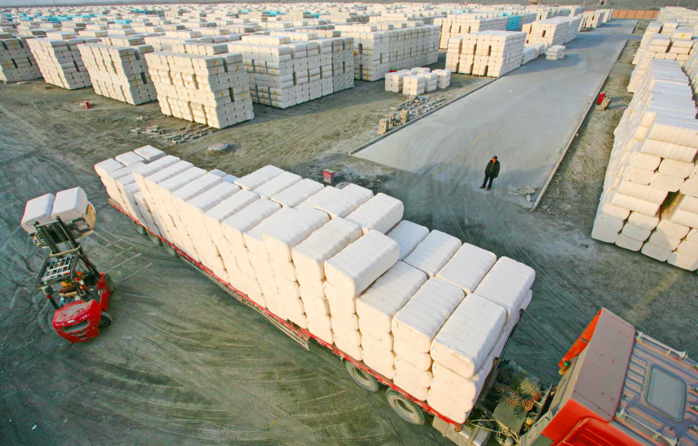 2025年12月12日,冬日的新疆南部晴空万里,航拍镜头下的新疆铁门关市储备新棉库区蔚为壮观。一排排标准化仓储大棚整齐排列,8万吨新棉满仓待发,洁白的棉垛如同 “白金” 堆垒的堡垒,彰显着这座南疆核心棉花储运枢纽的硬核实力。