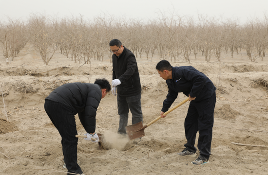 中新网兵团新闻3月13日电(朱克峰 牛俊鑫)春回大地万物苏,植树添绿正当时。3月13日,新疆生产建设兵团第一师十四团组织机关全体党员干部开展义务植树活动,以实际行动为团场生态建设再添新绿。