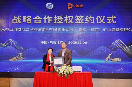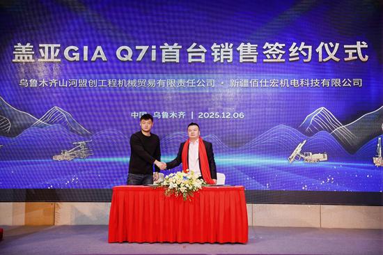 新疆矿产资源丰富,新疆盟创作为扎根新疆二十余年的本地企业,拥有完善的销售和服务团队,累计服务客户超过200家。发布会现场,盖亚(南京)矿山设备有限公司总经理谷晓坤将盖亚Q7i全国独家总代理授予新疆盟创,并举行服务认证授权仪式,标志着双方战略合作全面升级。现场还举行了盖亚GIA Q7i首台销售签约仪式。