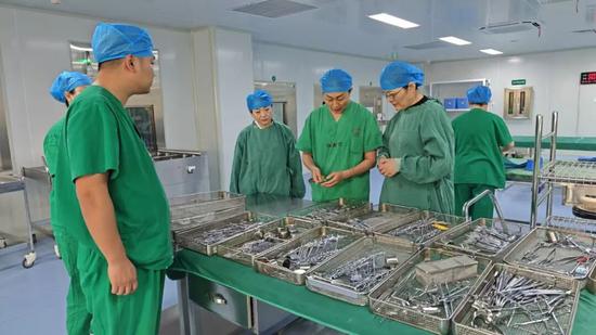 在一周的时间里,龚芝萍的身影遍布手术室一部、二部及DDI手术室的各个角落。她全程观摩了肝胆、腔镜、心脏、机器人手术等多台高难度手术的护理配合过程,从人员流动路线、无菌区域划分到精密器械传递技巧,不放过任何一个细微环节,凭借丰富的经验精准找出日常工作中不易察觉的问题,并当场进行规范示范和纠正指导,让护理人员在实操中改进方法并快速掌握。