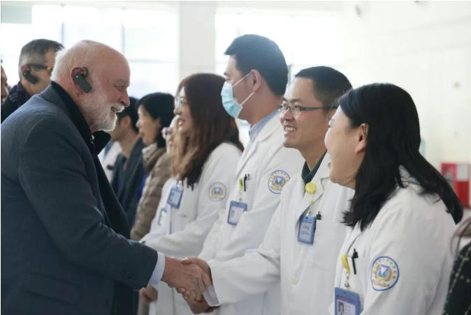 参观结束后,双方在医院6号楼322会议室召开座谈会。医院领导班子、专家代表与专家团齐聚一堂,围绕医院管理创新、特色学科建设、人才培养等方面展开深入研讨。会上,医院专家代表介绍了我院在护理人才培养、中西医结合诊疗、肿瘤治疗等方面的做法,分享了派驻工作感受;美国罗马琳达大学专家分享了在肿瘤治疗、儿童先天性心脏病治疗等方面的先进经验,专家团还结合国际医疗管理理念,为医院高质量发展建言献策,现场交流氛围热烈。