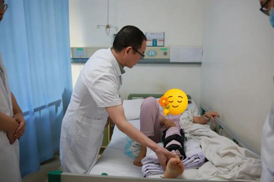 活动早,恢复快,因为自己的韧带和大部分关节结构都保住了,膝盖的“本体感觉”还在。术后第二天,柳书妍在医护人员的指导下便进行了抬腿运动,第三天就下地活动了!
