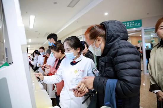“我年纪大了,眼神不好,自助机怎么也弄不明白,多亏了你们。”拿着志愿者帮忙打印好的检查报告,72岁的张明华(化名)大爷连连道谢。志愿者王留恒一边帮老人整理单据,一边耐心叮嘱:“大爷,这是您的检查单,往前走左拐就是,记得带好身份证和单据,别落下了。”面对群众的各类咨询,志愿者们始终俯身倾听、细致解答,从挂号流程到检查注意事项,从就诊路线到缴费方式,一一讲解到位。