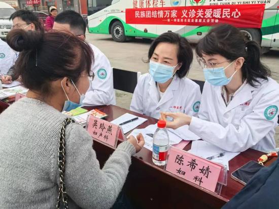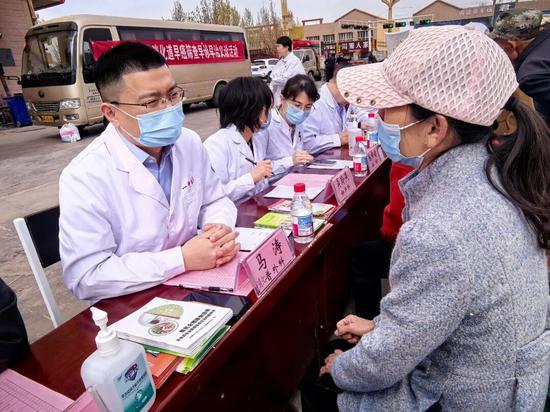 来自普外科、妇产科、消化内科、眼科等科室的20多位援疆专家和本地专家,耐心地为前来咨询的群众问诊、看诊,还根据情况免费发放了一些常用药。医生们仔细问病情、认真答疑问。